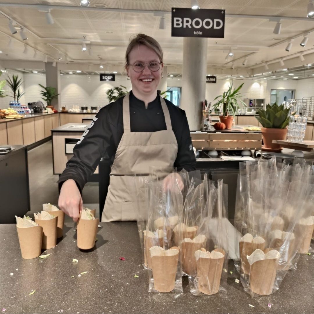 Janke is 21 jaar en werkt sinds het voorjaar van 2023 bij de Vermaat Groep; in het Medisch Centrum Leeuwarden verzorgt zij allerhande horeca werkzaamheden. Van het klaarmaken van lekkere broodjes en wraps tot het bijvullen van de voorraad of het onderhouden van de koffiemachines. Naast de 4 dagen dat Janke werkt volgt ze ook nog één dag in de week een MBO opleiding tot Horeca Assistent. Het geleerde brengt ze direct in de praktijk, ideaal! In haar zoektocht naar een passende baan is ze begeleidt door JOOOP en ook nu komt haar jobcoach wekelijks nog even een kop koffie drinken en bespreken ze samen welke zaken goed gaan en waar Janke op het gebied van school of werk nog ondersteuning bij nodig heeft. Het terug kunnen vallen op een jobcoach geeft Janke rust, structuur en veiligheid. Tegelijkertijd werken aan het behalen van een diploma én je eigen geld verdienen, de perfecte combinatie en ook erg handig gezien Janke graag samen met vriendinnen gaat shoppen en dat kost nou eenmaal geld!